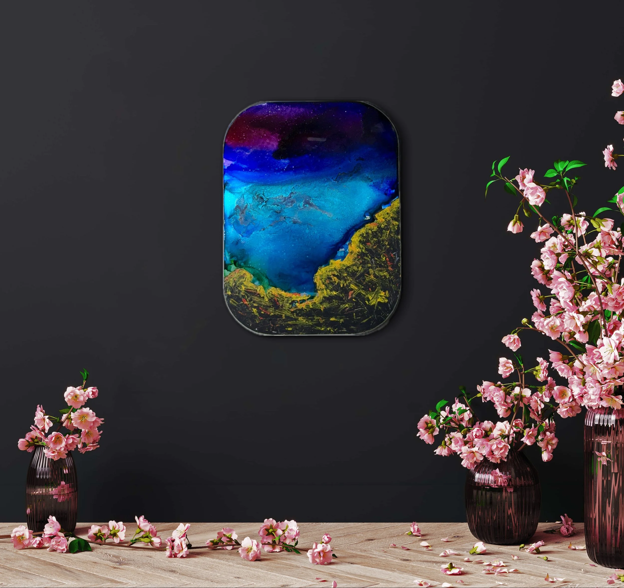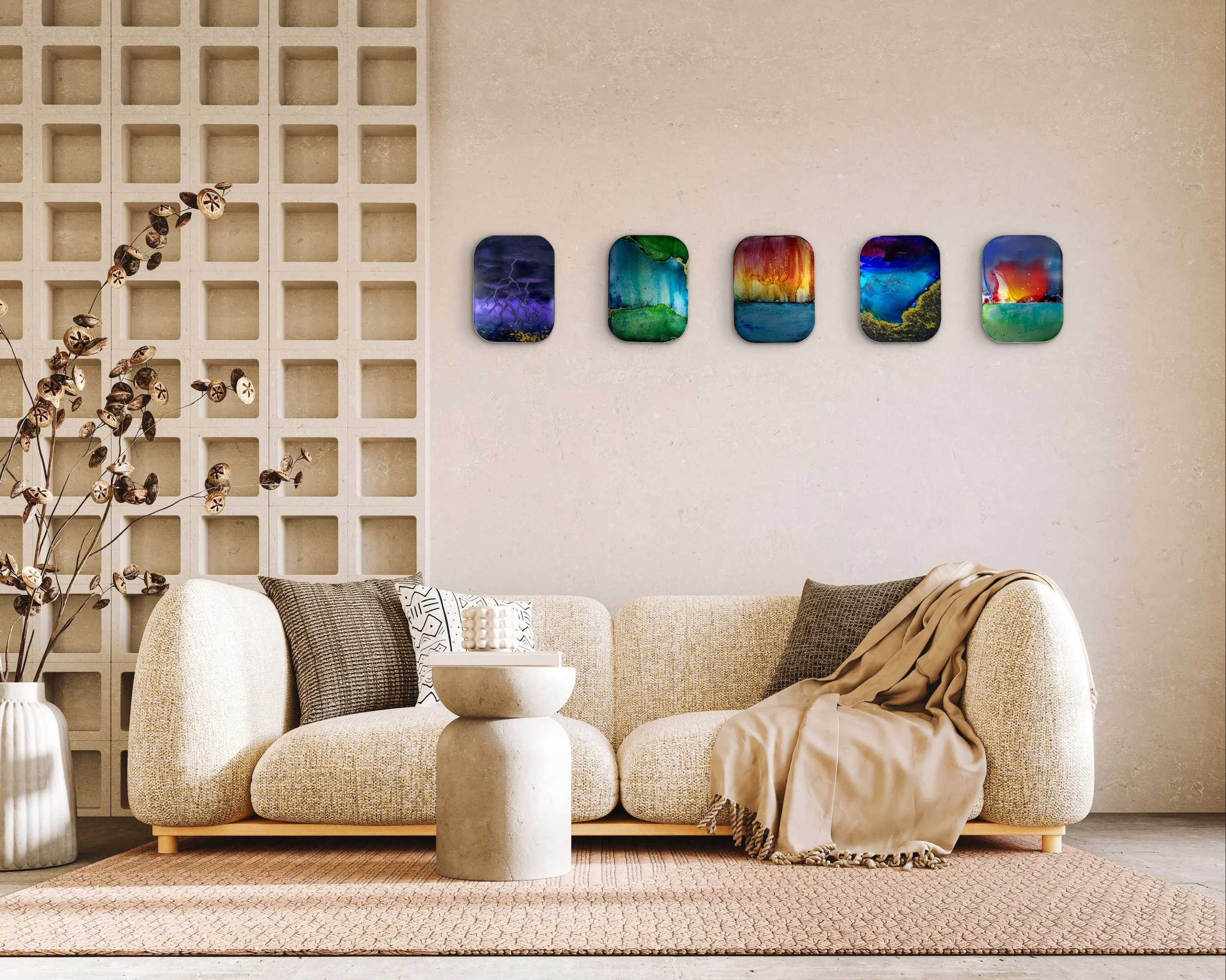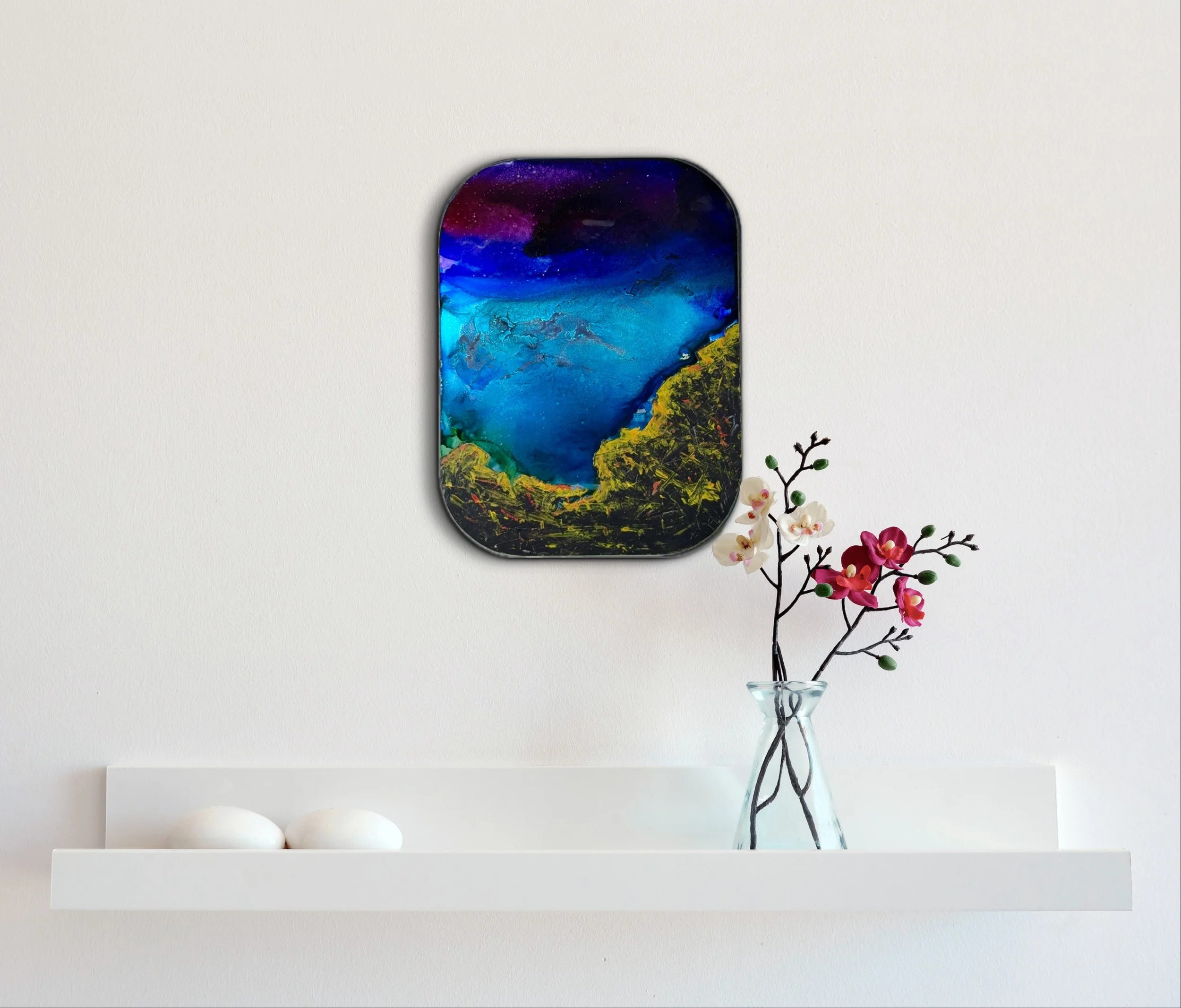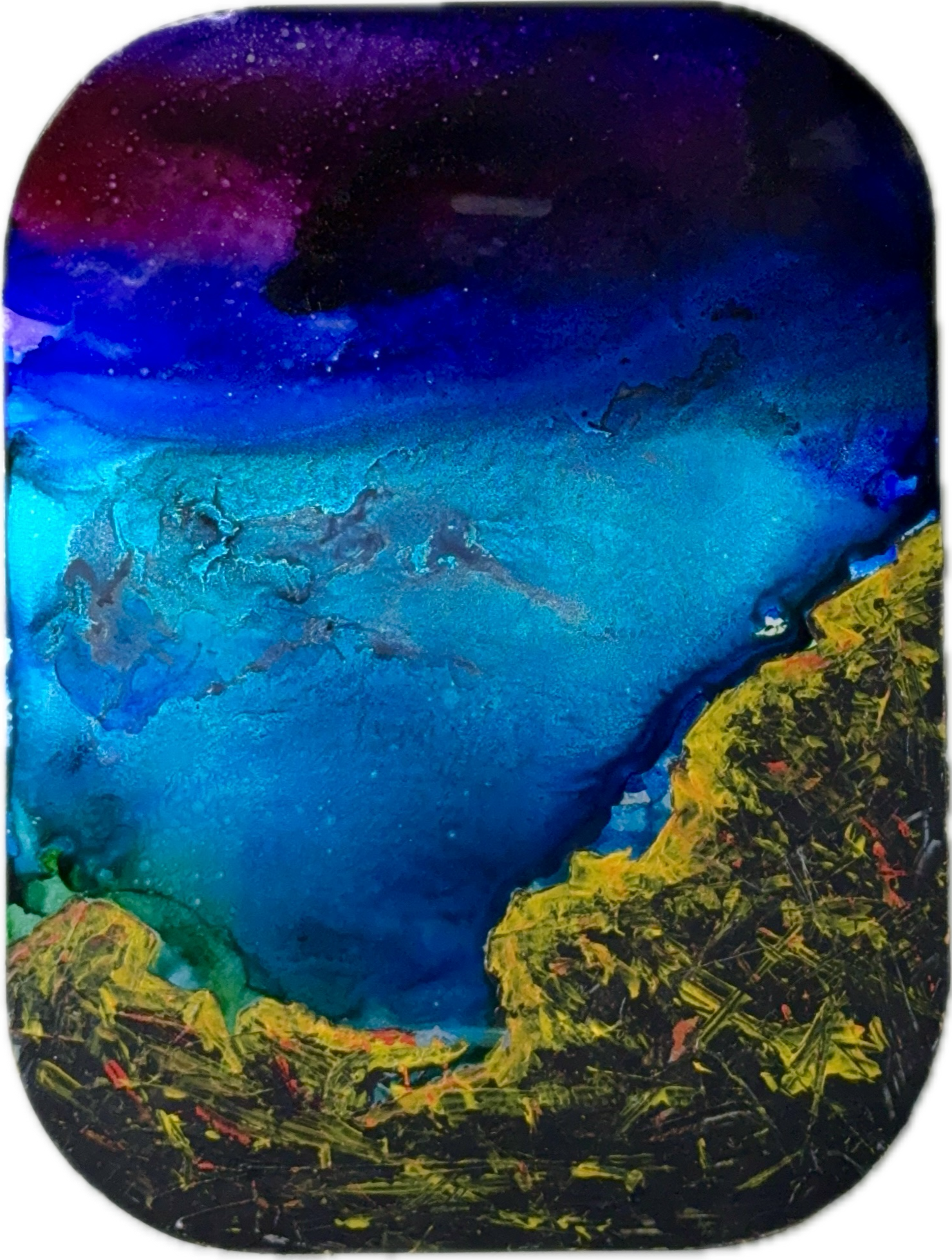 9”/12” Acrylic and alcohol ink on aluminium. 2025